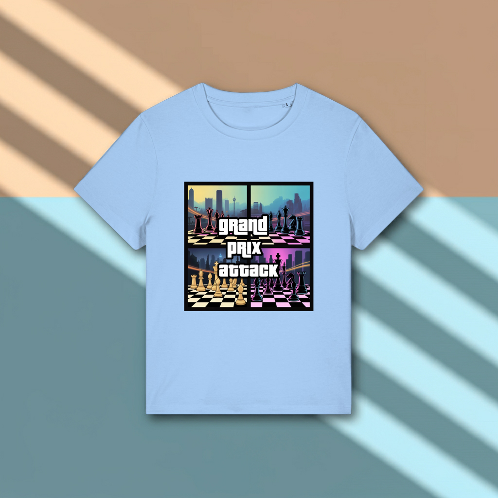 Du spielst nicht nur Schach – du greifst an. Mit dem auffälligen T-Shirt „Grand Prix Attack“ bringst du deine Leidenschaft für das Spiel und deine offensiven Züge direkt auf die Straße. Das knallige Retro-Design mit Schachbrett und Skyline trifft den Nerv der Zeit – mutig, modern, einzigartig.